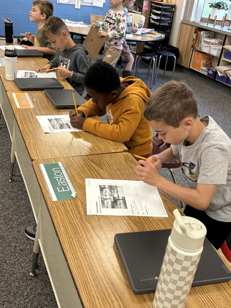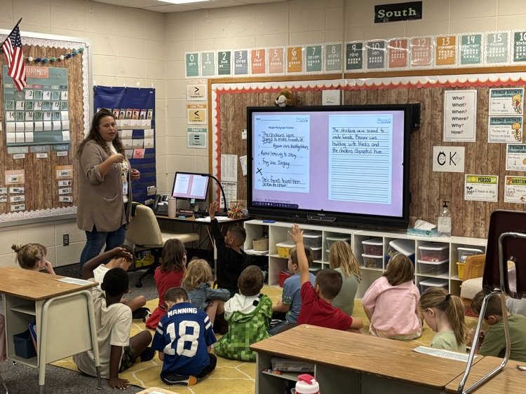 1st and 2nd grade Writing Revolution mini lessons in Mrs. Miller's and Mrs Garber's classrooms. Working hard on a Friday morning! 💙 ✍️ 🦅
