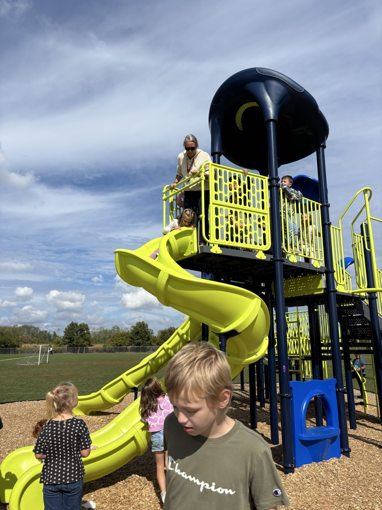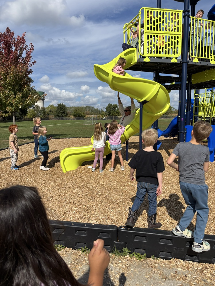 Our kindergarten friends convinced to Mrs. Palmer to go down the “tornado” slide during their extra recess this afternoon. . . Nothing like a little student pressure! 🌪️ 🛝