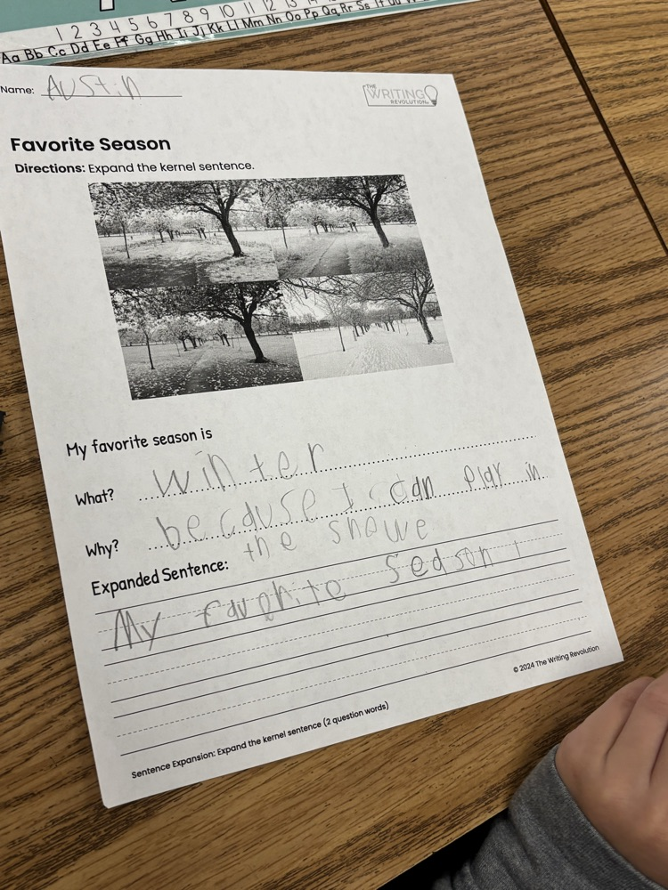 Our first grade friends were working hard on writing / expanding sentences this morning! ✍️ 💙🦅